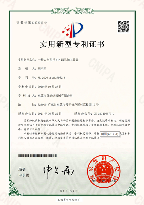 实用新型专利证书